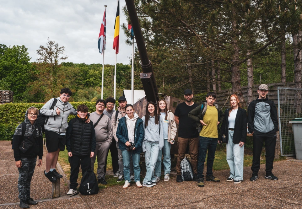 Dans le cadre des 80 ans de la Libération, le projet Devoir de Mémoire propose aux jeunes de visiter des lieux marquants de la Seconde Guerre mondiale. Nous avons déjà parcouru des lieux symboliques comme Breendonk, la Commémoration de la Bataille des Ardennes, la Caserne Dossin​ et le le Blockhaus d'Eperlecques, qui permettent d’aborder l’histoire de manière concrète et vivante.